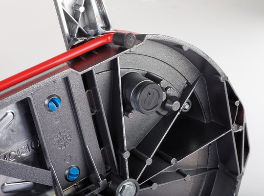 Плиткорез оснащён титановым роликом и имеет ниши с крышкой для его хранения.