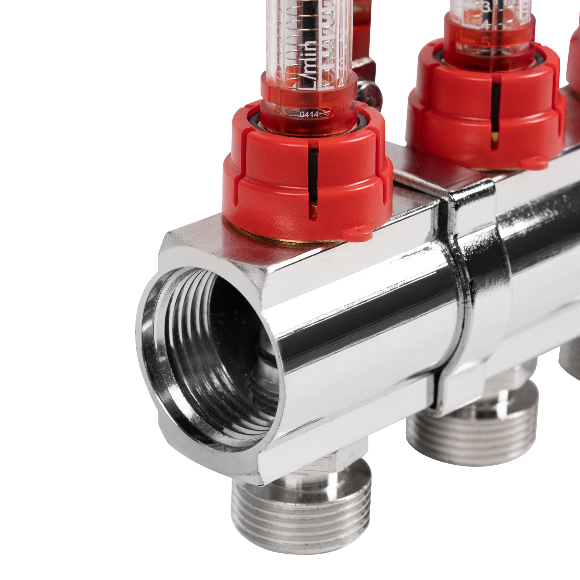 Коллекторы в сборе с расходомерами применяется для распределения и визуального контроля теплоносителя в системах напольного и комбинированного отопления, а также холодного водоснабжения.